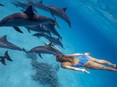 “Turn your dreams into reality with our Dolphin Swimming Tour in Hurghada. We take you to the famous ‘Dolphin House’ area (Shaab El Erg), the natural habitat of wild bottlenose dolphins. Unlike captive experiences, this tour allows you to swim and snorkel alongside these playful creatures in the open sea, respecting their natural environment.